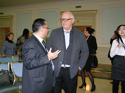 მაშინ მიხალკოვმა ფორუმის მონაწილეებს სიკეთის, გამბედაობისა და სიყვარულის ორი მასტერკლასი ჩაუტარა. თავდაპირველად ეს იყო ფილმი «Цитадель»-ის ჩვენება სერიიდან «Утомлённые солнцем-2» („მზით დაქანცულები- 2“). მიხალკოვი და მე პირველ რიგში ვისხედით. ცრემლები ვერ შევიკავე. მიხალკოვიც ძალიან აღელვებული ჩანდა და დიდი ადამიანებითვის დამახასიათებელი მოკრძალებით, ბოლო კადრებს არ დაელოდა - დაიხარა, რომ ეკრანი არ დაეფარა და გასასვლელისკენ გაემართა. თუმცა, შეუმჩნევლად წასვლა, სანამ დარბაზში შუქს აანთებდნენ, ვერ შეძლო - წამოვდექი და ტაში დავუკარი, მთელი დარბაზი ამყვა! ფოიეში მიხალკოვს ვუთხარი: „ნიკიტა სერგეევიჩ, იცი, რას ვისურვებდი ახლა ყველაზე მეტად? რომ ზოგიერთ პოლიტიკოსს ხელბორკილები დაადონ და კინოდარბაზში შემოათრიონ - აიძულონ თქვენი ფილმის ნახვა. იქნებ დარბაზიდან ადამიანებად გამოვიდნენ!“. პირველ რიგში, საქართველოს მაშინდელ პრეზიდენტ სააკაშვილს და მის ხროვას ვგულისხმობდი. მიხალკოვმა საპასუხოდ გულიანად გაიცინა და სწორედ ეს მომენტია აღბეჭდილი ქვემოთ ფოტოზე.