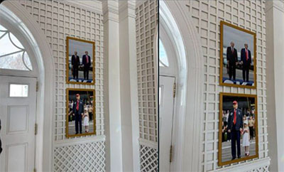 „ასევე, დასავლეთ ფრთისა და რეზიდენციის დამაკავშირებელ ფოიეში შევნიშნე ისეთი რამ, რაც აქამდე არ მენახა: პრეზიდენტების ტრამპისა და პუტინის ჩარჩოში ჩასმული ფოტო ალასკაში მათი ზაფხულის სამიტიდან. ქვემოთ მოცემულ ფოტოზე პრეზიდენტი ტრამპი ერთ-ერთ შვილიშვილთან ერთად არის გამოსახული“.