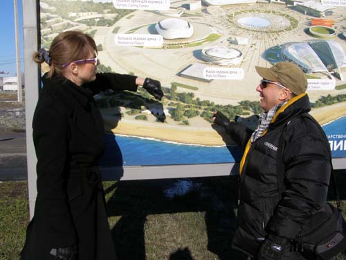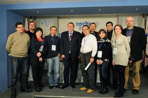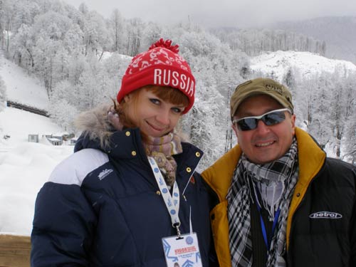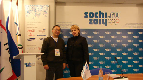 სოჭში ერთიანი საინფორმაციო ცენტრი -2014-ის წარმომადგენლობის ხელმძღვანელთან, ტატიანა სტრახოვასთან ერთად