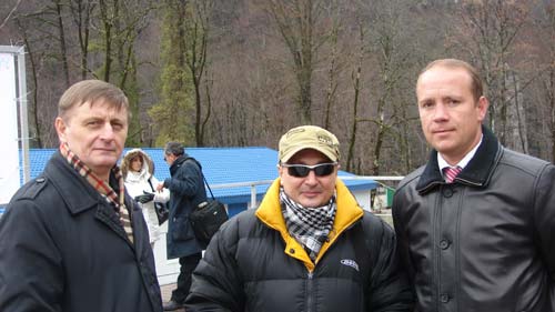 ა. ხიდირბეგიშვილი (ცენტრში) სოჭის ღია სააქციო საზოგადოება „რუსეთის რკინიგზის“ ხელმძღვანელ ანდრეი დუდნიკთან ერთად