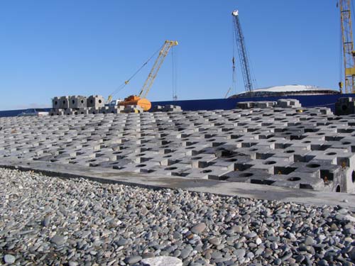 სოჭის სანაპირო ზოლი სპეციალური ბეტონის კონსტრუქციებით ზღვაში 50 მ-ით შეჭრეს